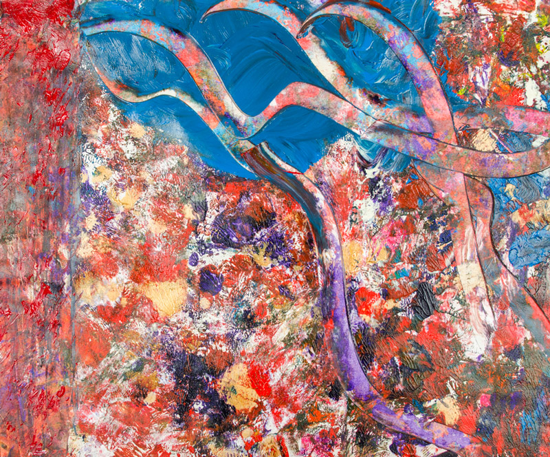 What is behind the curtain? / Acryl op papier en MDF / 50 x 65 cm